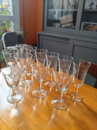 Juego 10 copas licor, cristal tallado