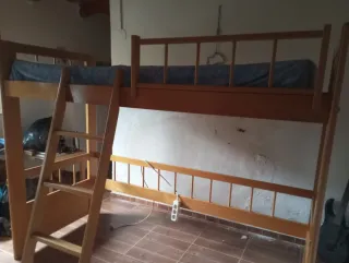 Cama alta de madera con unas medidas de 80cm.posibilidad abajo de poner cama de 90, escritorio o lo que se desee. - Estructura de madera. - Color marrón.