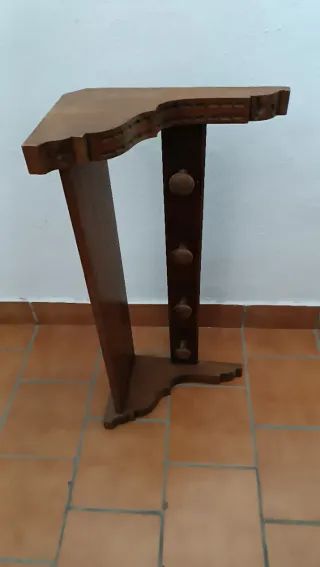 Elegante perchero de madera de roble con detalles tallados. 91 cm x 41 cm x 25 cm. - Diseño tallado a mano. - Base estable y robusta. - Acabado natural.