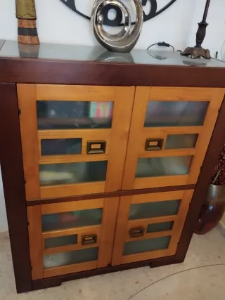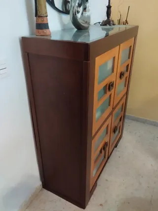 Mueble de entrada de madera con cristal