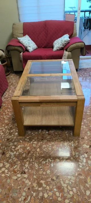 preciosa mesa de centro con cristal incluido en el precio .(las medidas son largo,alto,ancho) mesa,sillas,tapicería sofás,cortinas,televisores,dormitorios,mesitas salones,cherlon,