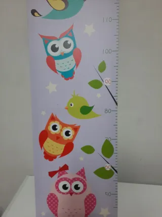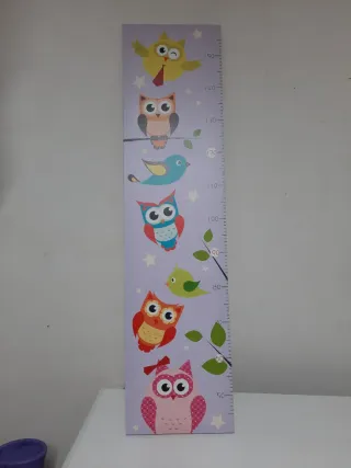 Este encantador cuadro de pared presenta un diseño de búhos y pájaros en tonos morados y multicolor. Es una pieza decorativa ideal para habitaciones infantiles o cualquier espacio que necesite un toque de color y fantasía. -Medidas 1200mm x 300mm - Diseño original con varios búhos y pájaros. - Escala de crecimiento integrada en el diseño.