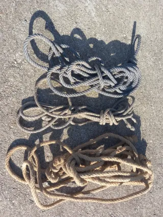 Conjunto de cuerdas de diferentes materiales, ideales para diversas aplicaciones. - Color marrón y gris. - Materiales duraderos. - Se pueden usar para amarre, decoración, etc.