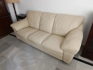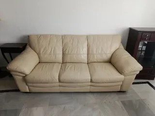 Sofá de piel beige.