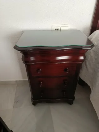 Mesita de noche madera con cristal