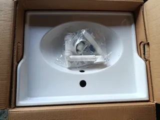Lavabo de cerámica en color blanco. Incluye accesorios para su instalación. - Diseño moderno y funcional. - Material resistente y fácil de limpiar. - Agujero para grifería.