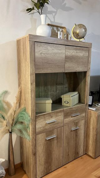 Aparador de madera con cristal