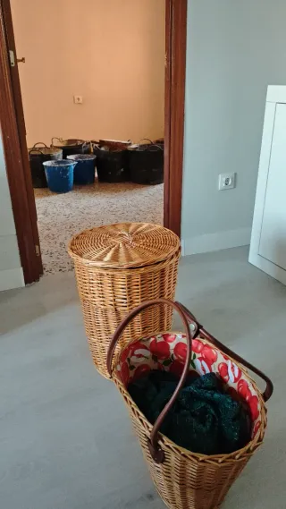 Bolso y cesto de mimbre