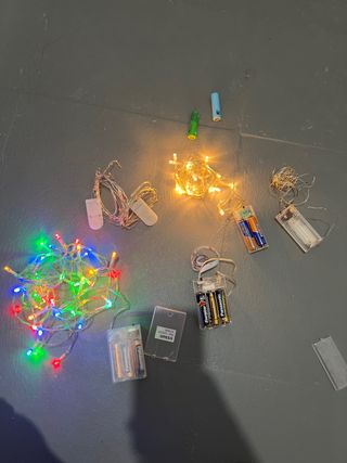 Conjunto de luces LED para decorar en cualquier ocasión. Son ideales para crear un ambiente festivo. - Luces de varios colores. - Cable transparente. - Todas funcionan a pilas - Varios modelos y colores