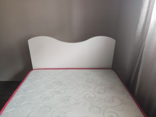 Conjunto de cama completo en color blanco (solo venta en persona): - Base canapé en color blanco. Medidas 105 cm x 190 cm x 35 cm. - Colchón. Medidas 105 cm x 190 cm x 19 cm. - Cabezal blanco con forma ondulada. Medidas 100 cm x 2 cm x 95 cm