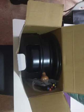 Set de fondue sin usar, ideal para compartir. - Base de madera. - Incluye varios recipientes para ingredientes.