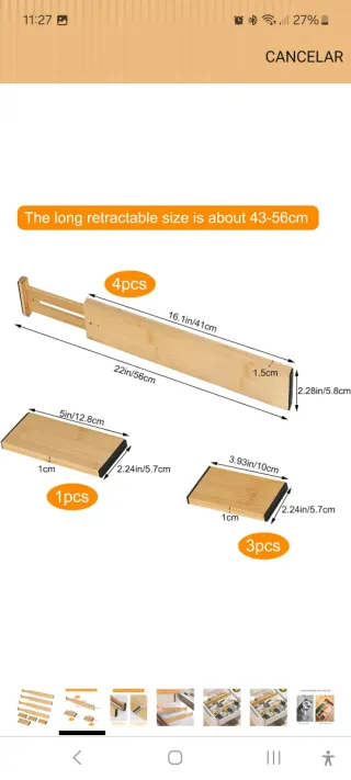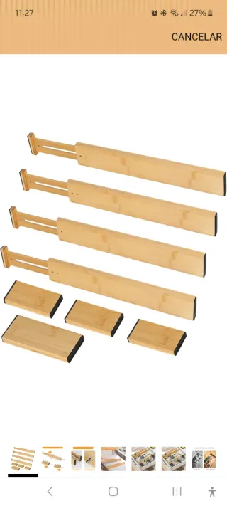 Nuevo en su embalaje Conjunto de separadores para cajones, ideales para organizar tu espacio. - Fabricados en bambú. - Diseño extensible para adaptarse a diferentes anchos. - Acabado natural.
