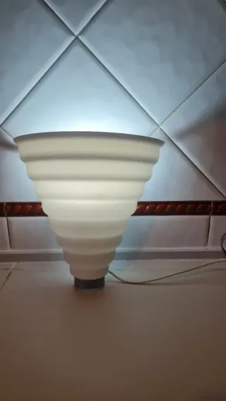 Lámpara de mesa con un diseño moderno y escalonado. Su forma cónica invertida la hace destacar. - Material: Plástico - Color: Blanco