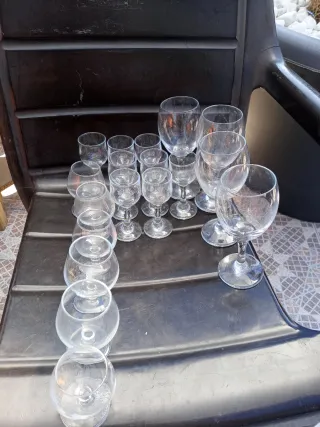 Conjunto de copas de cristal: - 4 copas de champan - 7 vasos de tubo - 1 copa vino - 2 copas de agua