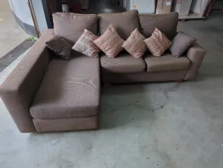 Sofá cheslong de tela en tonos beige y marrón.Tengo furgoneta para llevarlo el porte es aparte. 609 88 50 58