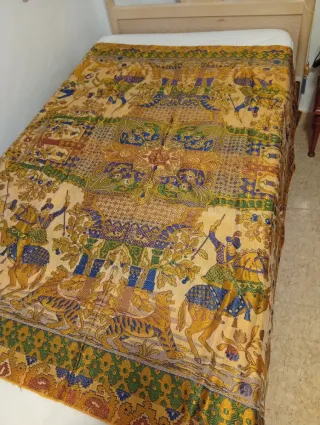 Mantel antiguo tela oro y multicolor