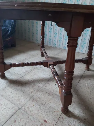 Mesa redonda de madera con un acabado clásico. - Diseño elegante y funcional. - Patas robustas para mayor estabilidad.