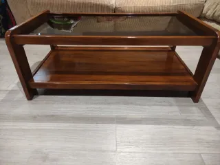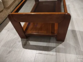 Elegante mesa baja con superficie de cristal y estructura de madera. - Diseño moderno y funcional. - Combina a la perfección con diversos estilos de decoración. - Ideal para el salón o comedor.
