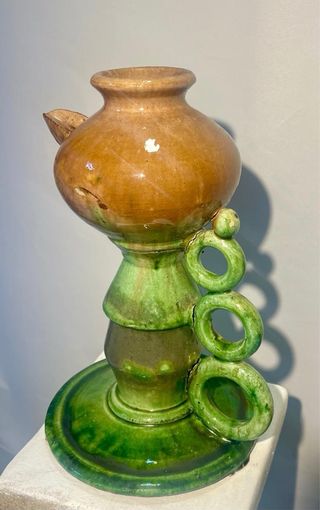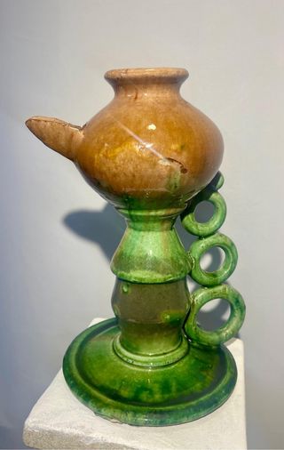Precioso objeto decorativo entre jarrón y candil alto. Posiblemente de mano factura aragonesa. Mide de alto 30 cm y data de mediado del XX. Atiendo también por WhatsApp 680838837