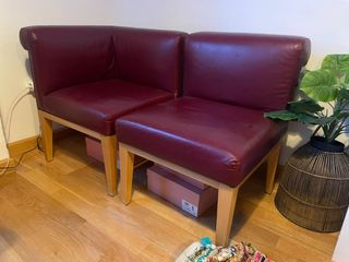 Asientos modulares en piel natural de buena calidad. Perfecto estado, sin manchas ni roturas. Estructura de madera sólida. Se pueden usar como sillones independientes o juntos. Ideal para salón, recepción u oficina Medidas aproximadas: - Sofas (esquinero) 63 x 58 y de alto 71 - Sofa no esquinero 63 x 52 y alto 71