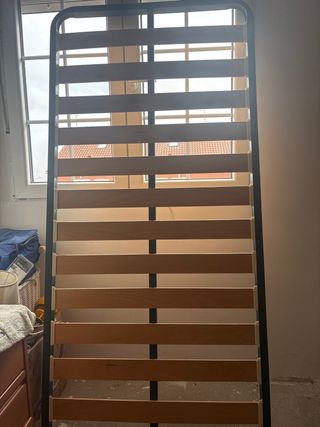 Somier de láminas de madera con estructura metálica. - Medidas: 105x190 cm. - Láminas de madera. - Estructura metálica resistente.