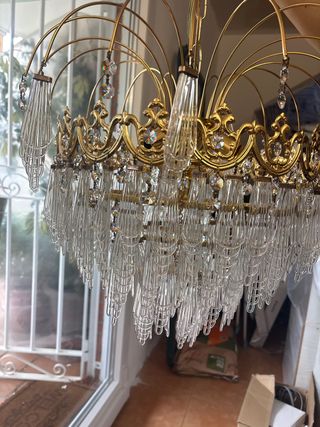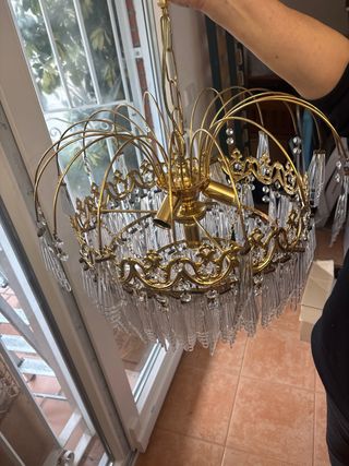 Elegante lámpara de araña con un diseño clásico. - Acabado en tono dorado. - Luces tipo vela