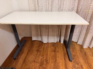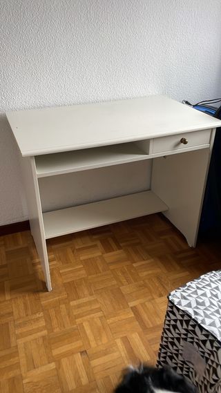 Escritorio funcional con un diseño moderno. Blanco perfecto para colocar hasta tres monitores si te las apañas bien se vende por cambio de escritorio acepto cambios si te interesa - Superficie de color blanco. - Patas de metal y madera