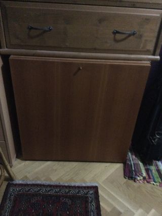 Mueble de almacenaje con un diseño clásico y funcional. - Fabricado en madera. - Color marrón natural. - Dispone de varios cajones para guardar objetos. - dos muebles ,uno con 3 cajones y repisa , otro con puerta y dos estantes - ver fotos . A recoger en San Lorenzo del Escorial .
