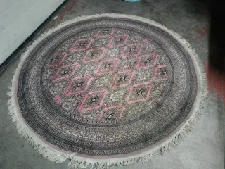 Preciosa alfombra circular LEMAN, de 1.9 metros de diámetro, 100% felpa de lana. No tiene desperfectos pero requiere tratamiento de limpieza.