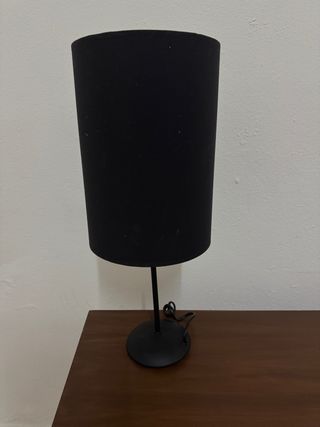 Elegante lámpara de mesa con un diseño moderno. - Pantalla de tela. - Base y pie de metal.