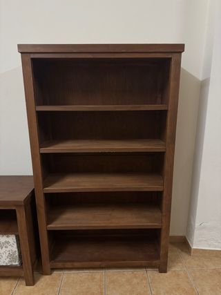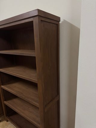 Estantería de madera con varios estantes para organizar tus libros y objetos. - Diseño clásico y funcional. - Acabado en tono marrón oscuro.