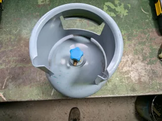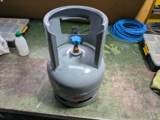 Botella vacía de aire acondicionado con capacidad de 6kg. Ideal para recargas o proyectos. - Fabricada en metal resistente. - Válvula de plástico azul.