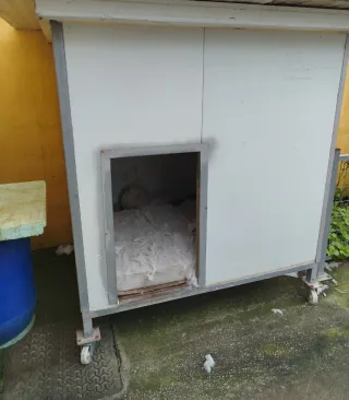 Caseta para perros con estructura metálica y paneles blancos. Es un refugio cómodo y seguro para tu mascota. - Diseño espacioso. - Fácil de limpiar. - Ideal para exteriores.
