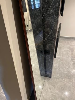 Conjunto de espejos decorativos para pared. 12 cristales - Varios tamaños y formas. - Marcos de metal negro. - Hay dos cuadros más que no se ven en la foto uno redondo y uno cuadrado