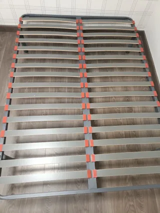 Se vende somier de láminas con estructura metálica y colchón. Están en perfecto estado, muy poco uso. - Láminas de madera. - Estructura de metal.