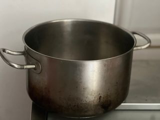 Olla mediana de acero inoxidable con dos asas. - Diseño clásico y funcional. - Acabado plateado brillante. - Material resistente y duradero.