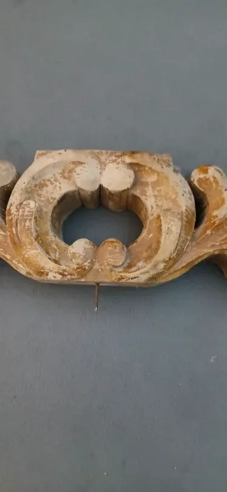 Este copete antiguo es un detalle decorativo ideal para muebles. - Diseño tallado con volutas. - Acabado envejecido.