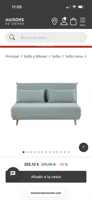 Sofá cama de dos plazas en un bonito color verde agua. Ideal para espacios reducidos o para tener un extra de asientos. Nuevo, solo se ha usado una vez. Disponible para recoger en domicilio. - Diseño moderno y funcional. - Tapicería confortable.