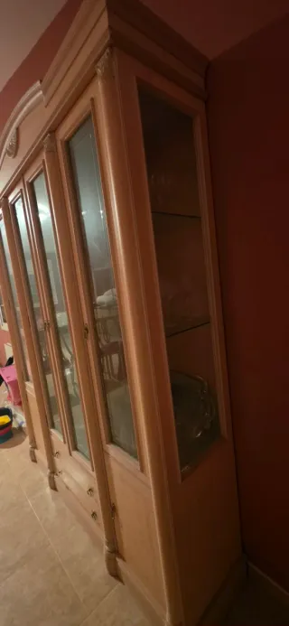 Elegante vitrina para salón o comedor, con un diseño clásico y funcional. - Fabricada en madera y cristal. - Acabado en tonos beige y marrón.
