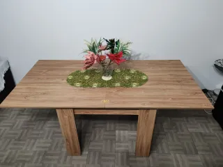 Mesa de comedor extensible con un diseño moderno y funcional. Perfecta para ampliar el espacio cuando sea necesario. Muy bonita 😍 - Material aglomerado acabado en madera natural. - Diseño extensible para mayor versatilidad. Aberta: 180x90cm Fechada: 90x90cm Altura: 74cm Observación: la mesa no tiene sillas. NO NEGOCIABLE Fácil de abrir y cerrar. Recoger en un bajo en Sant Andreu de la Barca.