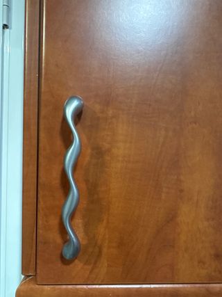 Este tirador de armario presenta un diseño ondulado y moderno. - Acabado metálico plateado. - Forma curva y ergonómica. 19 tiradores 160mm