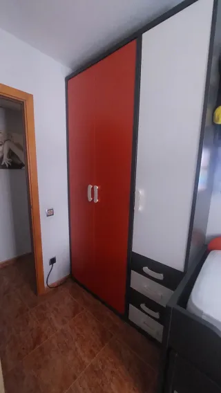 Habitación juvenil muy buen estado: -Armario 240 cm alto x 138 cm ancho x 57 cm fondo. - Cama nido 77 cm alto x 202 cm ancho x 92 cm fondo. - Estanterias 33 cm alto x 196 cm de ancho x 25 cm fondo. Combinación 3 colores: blanco, gris pizarra y rojo. De regalo lámpara a juego. Ver mi perfil. Si lo quieres ver montado ven antes de final de enero, porque la desmontaré.