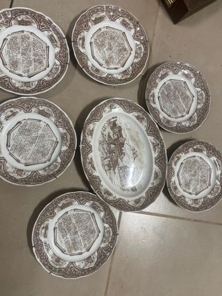 Conjunto de vajilla de cerámica con un diseño único. - Cada plato presenta una receta tradicional aragonesa. - El borde está decorado con motivos inspirados en la región. - Incluye una fuente ovalada. - El conjunto consta de 6 platos llanos y 1 fuente.