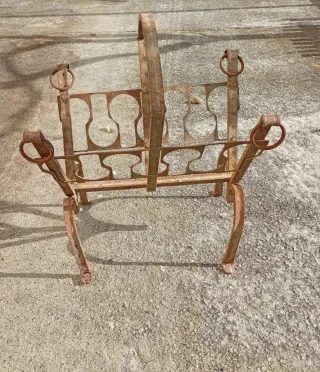 Elegante revistero de estilo vintage, perfecto para organizar tus revistas y periódicos. - Diseño de metal con detalles decorativos. - Aporta un toque clásico a tu hogar. _ Necessita una buena restauracion, està oxidado.