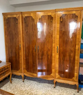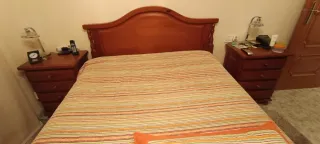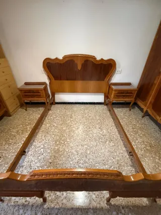 Vendo dormitorio clásico completo de madera: armario grande, cómoda con espejo, dos mesillas, cama con cabecero y pie y somier incluido. Madera en buen estado, no está carcomada. Algunas partes necesitan restauración estética, ideal para restaurar o usar tal cual. Se entrega desmontado para facilitar transporte. Recogida en Sant Carles de la Ràpita (Tarragona). Precio: 750 €
