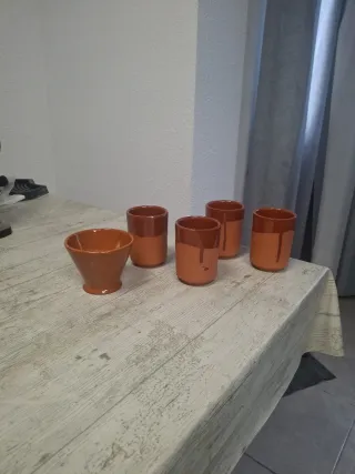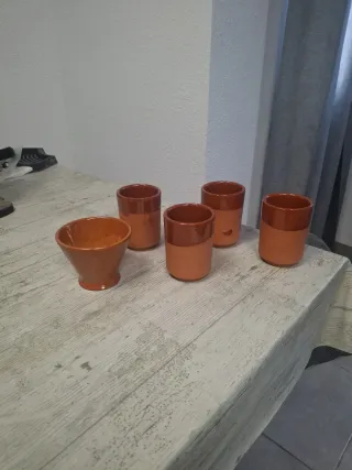 Set 4 Vasos y 1 Cuenco Barro