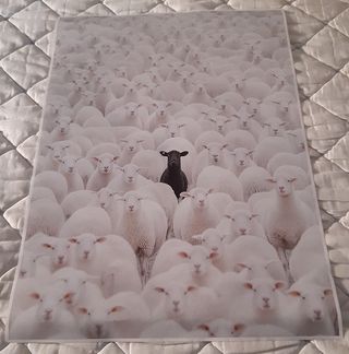 Este Póster de Lienzo presenta un Diseño llamativo con una Oveja Negra Rodeada de Ovejas Blancas. - Poster Lienzo "Oveja Negra" - Dibujo - Oveja Negra rodeada de Ovejas Blancas. - Tamaño - 70x50 cm. - Material - Lienzo. (Muy Resistente)(Sin Arrugas) - Estilo - Retro Clásico Art Deco. Se puede enmarcar o sujetarlo en la pared con chinchetas. - Impresión de alta calidad sobre lienzo.