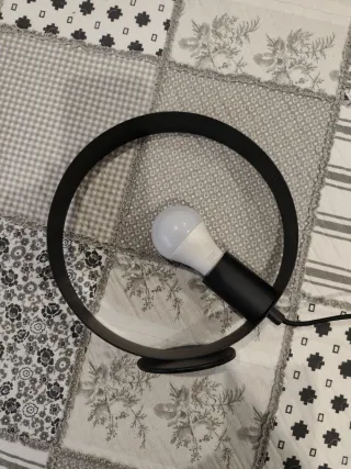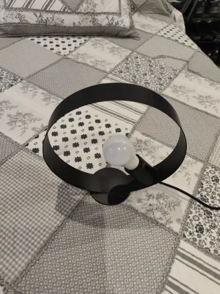 Lámpara de mesa con un diseño contemporáneo y elegante. Su estructura circular le da un toque distintivo. - Acabado en color negro. - Base redonda.