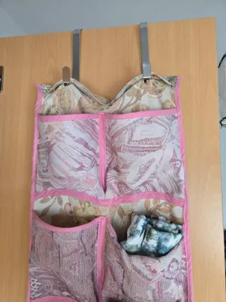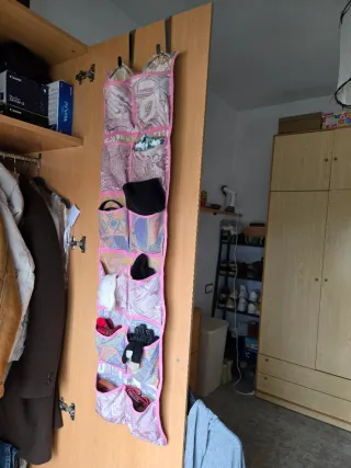 Organizador colgante con múltiples compartimentos, ideal para guardar zapatos u otros accesorios.