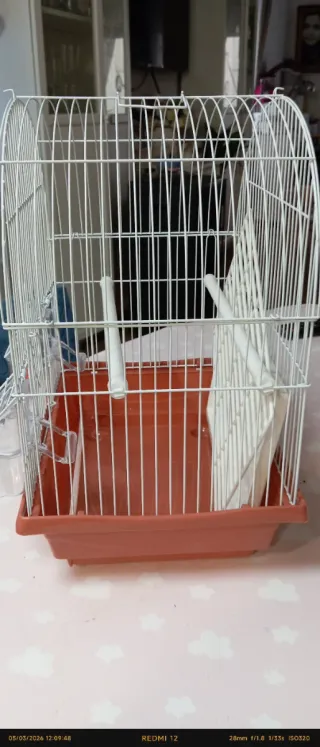 Jaula para pájaros blanca y marrón nieva